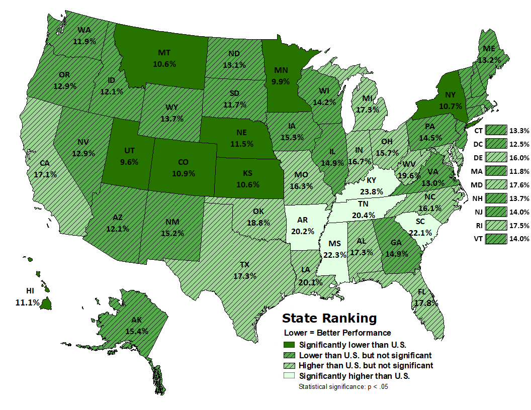 Nationwide: 15.5% of children met indicator Range Across States: 9.6% to 23.8%