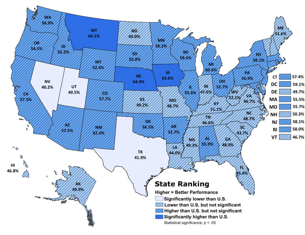 Nationwide: 52.3% of children met indicator Range Across States: 40.2% to 64.9%